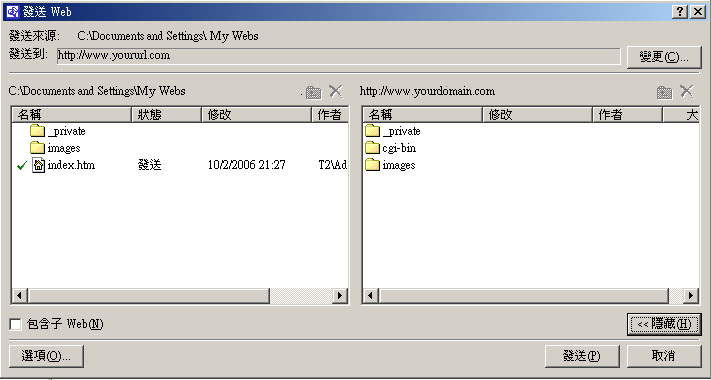 如您是使用Frontpage 設計網頁,但沒有用到以上幾種功能,您只須參考一般Frontpage的上傳方法便可