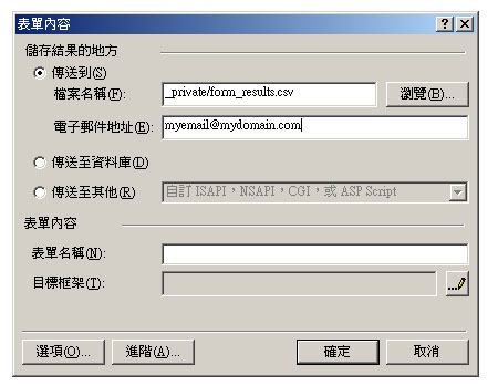 2) 我們的伺服器是支援Frontpage extension 的表單內的電郵發送,在製作表單