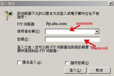 (如未能成功連接,可能是密碼錯誤或使用者名稱錯誤)。