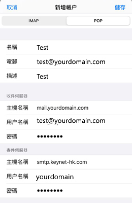 4. 在<<新增帳號>>頁面,輸入以下資料: